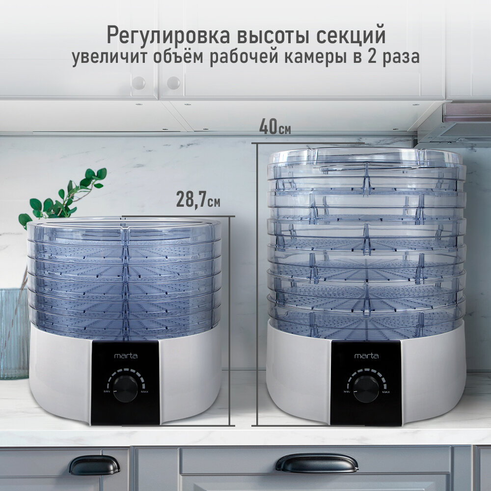 Электросушилка MARTA MT-FD1889C 8 поддонов (6+1 для пастилы+1 для ягод) белый жемчуг интересное: