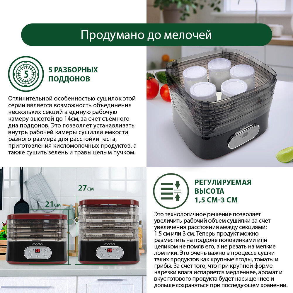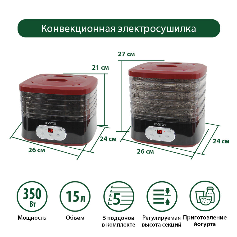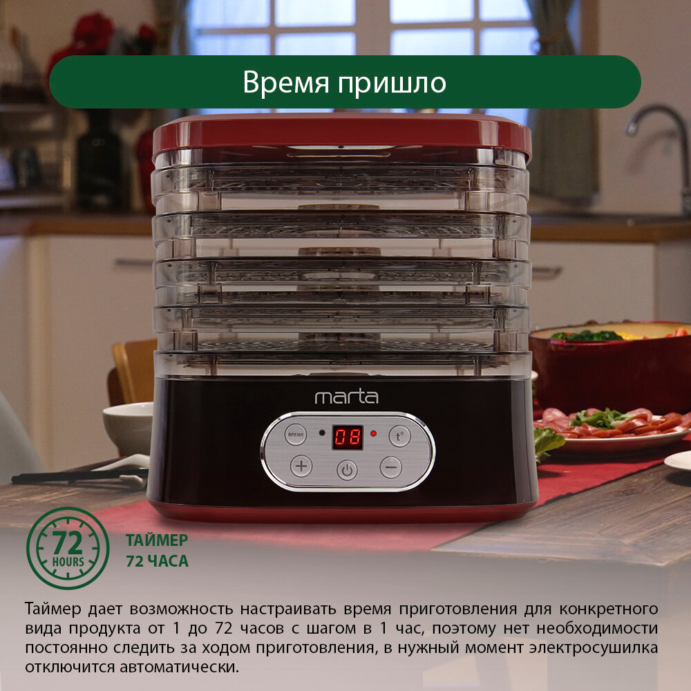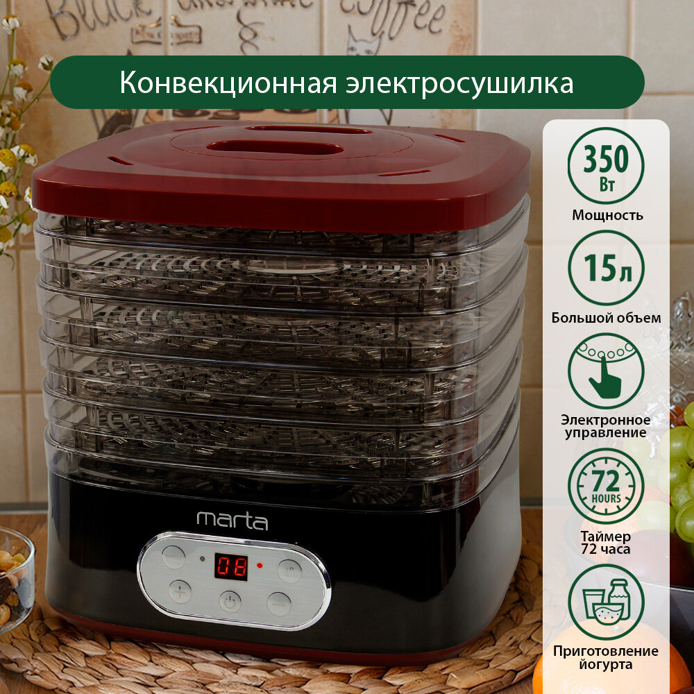 Электросушилка MARTA MT-1944 5 поддонов черный/красный интересное: