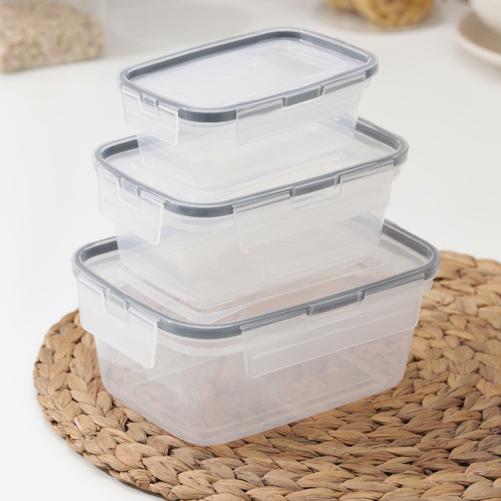 Комплект контейнеров для продуктов с защёлкой, герметичная крышка, 3 шт, 350 мл, 750 мл, 1.3 л, прямоугольные, цвет прозрачный