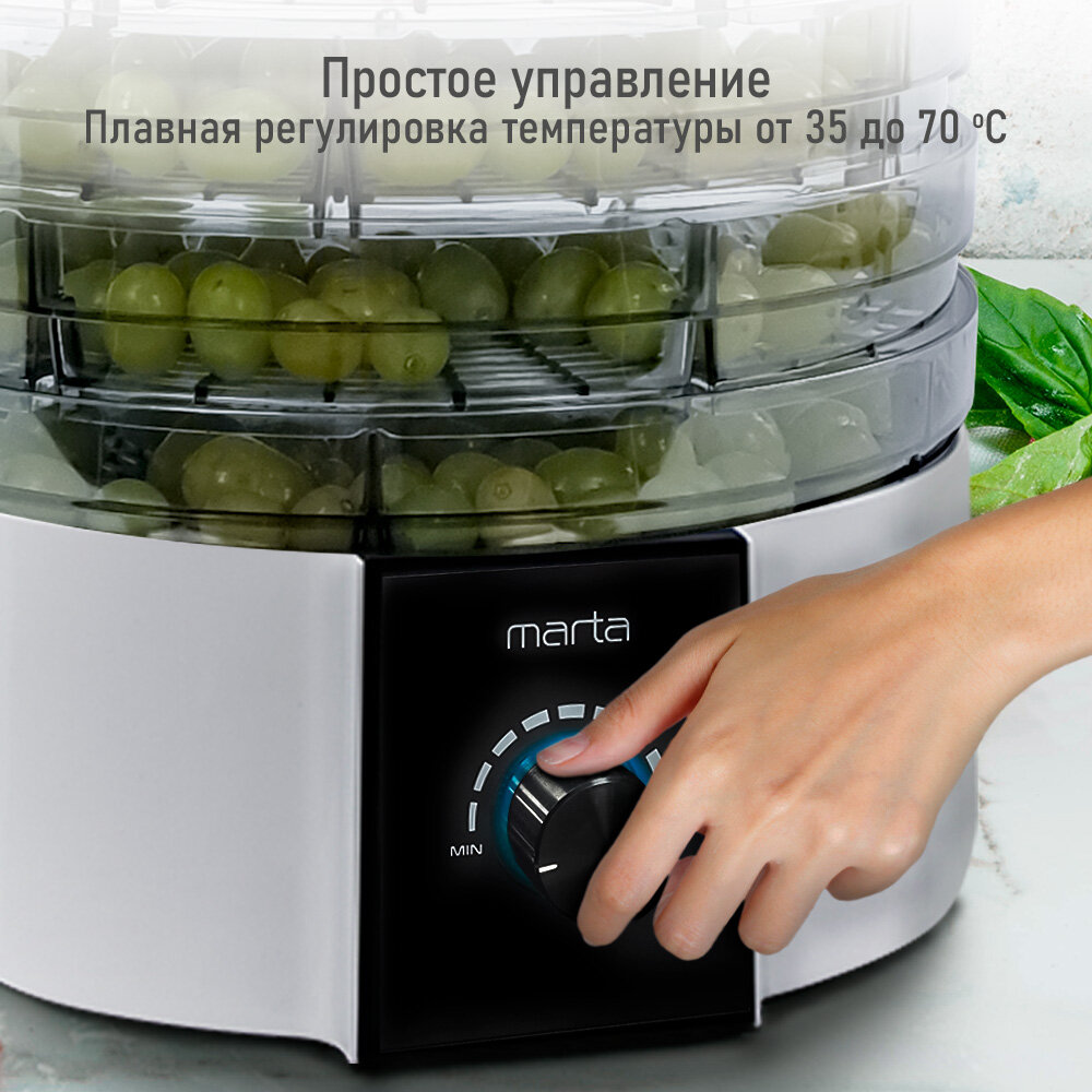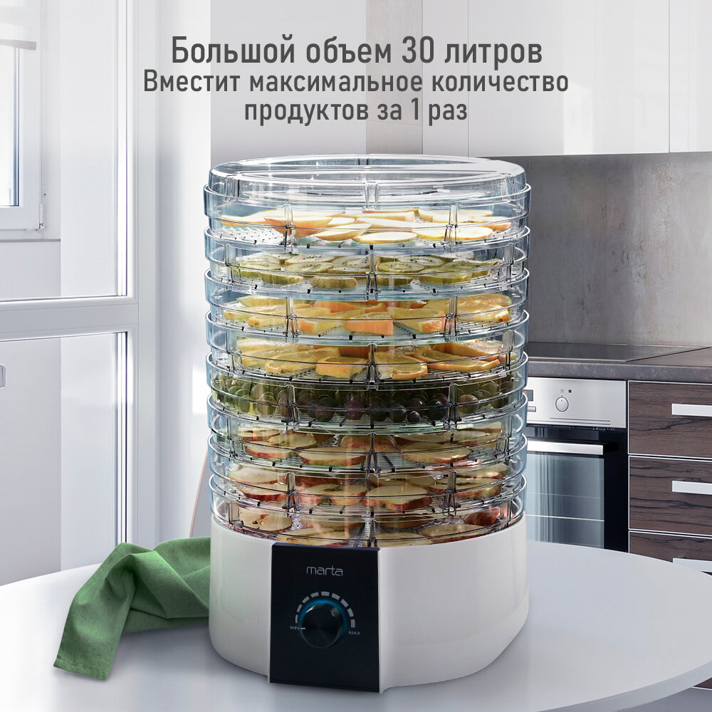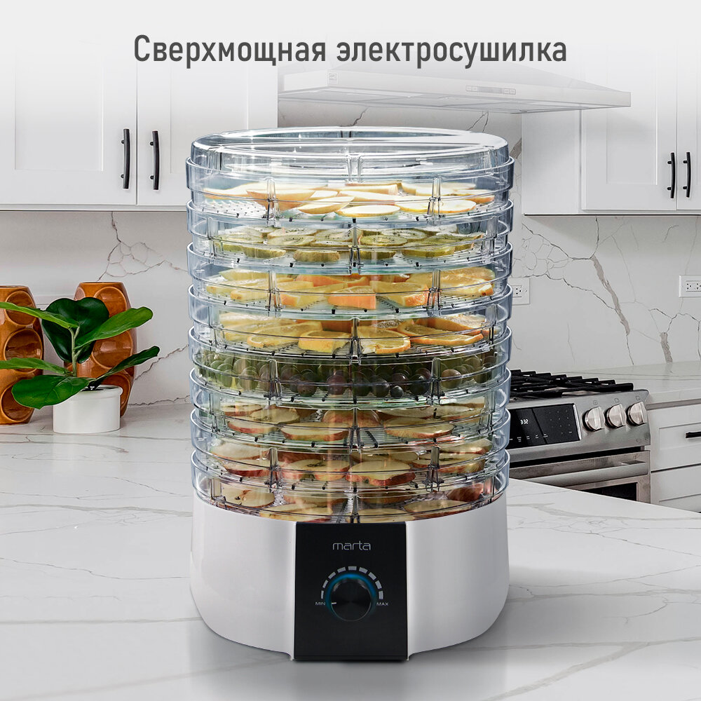 Электросушилка MARTA MT-FD1889E 10 поддонов (8+1 для пастилы+1 для ягод) белый жемчуг интересное: