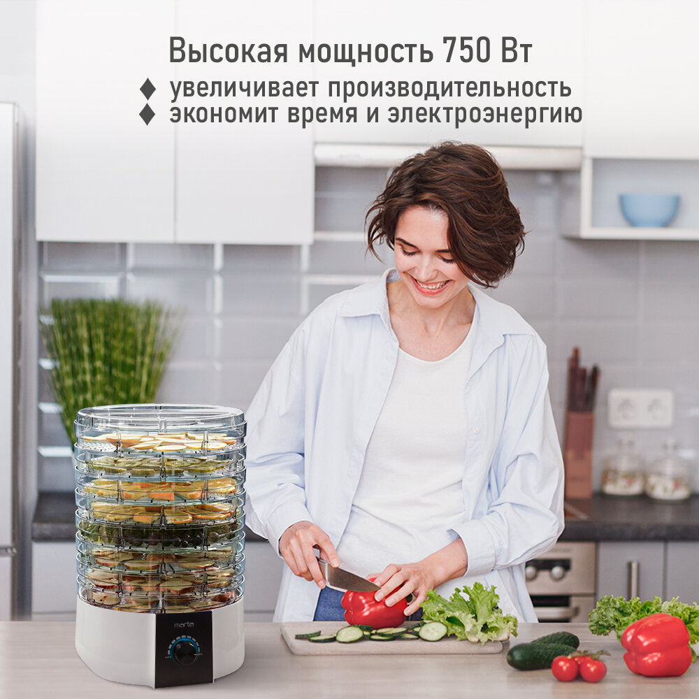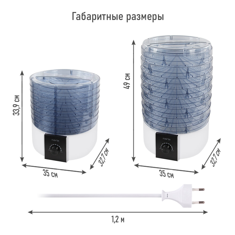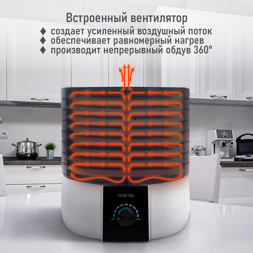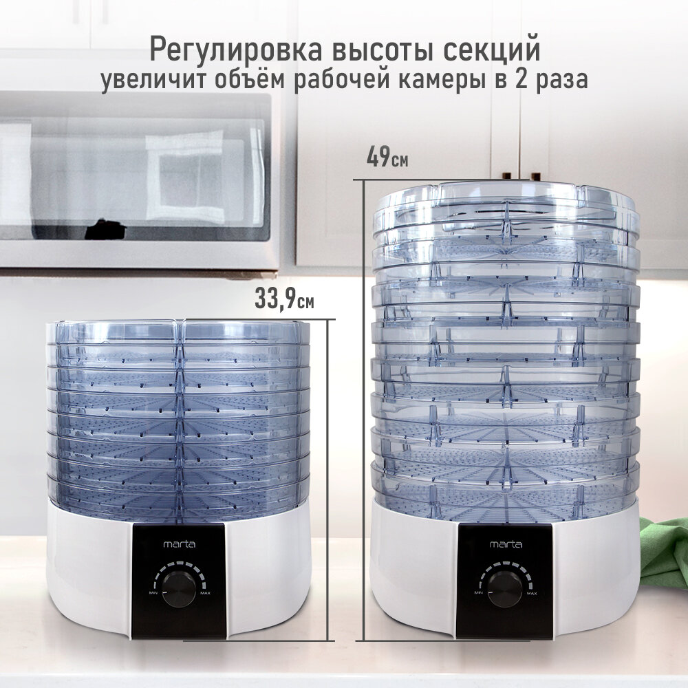Электросушилка MARTA MT-FD1889E 10 поддонов (8+1 для пастилы+1 для ягод) белый жемчуг интересное: