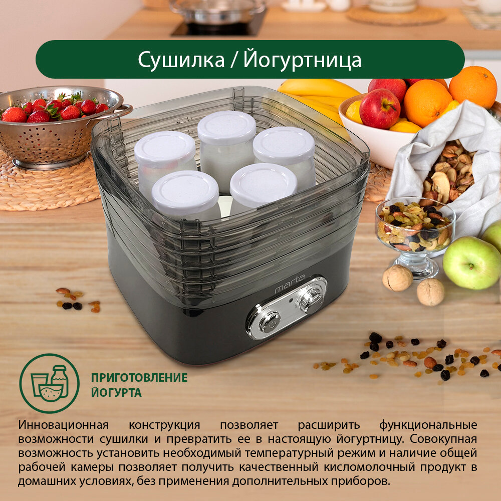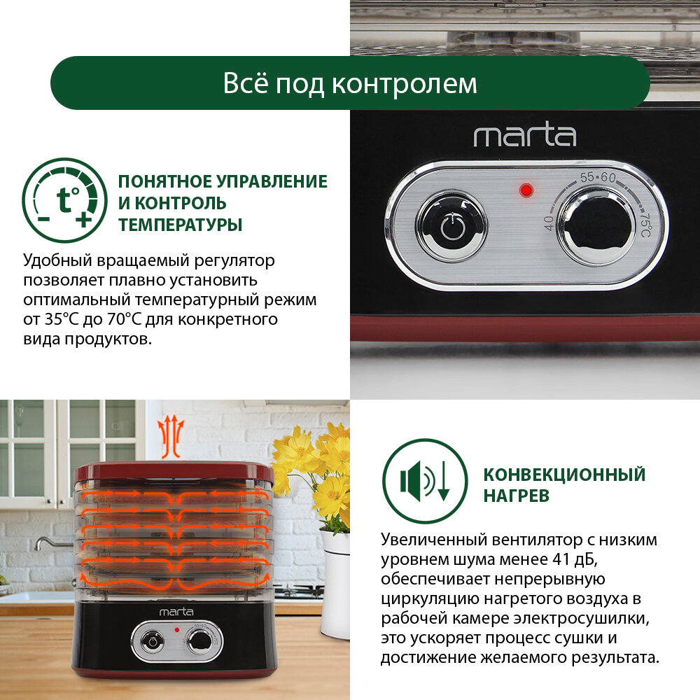 Электросушилка MARTA MT-1945 5 поддонов черный/красный интересное: