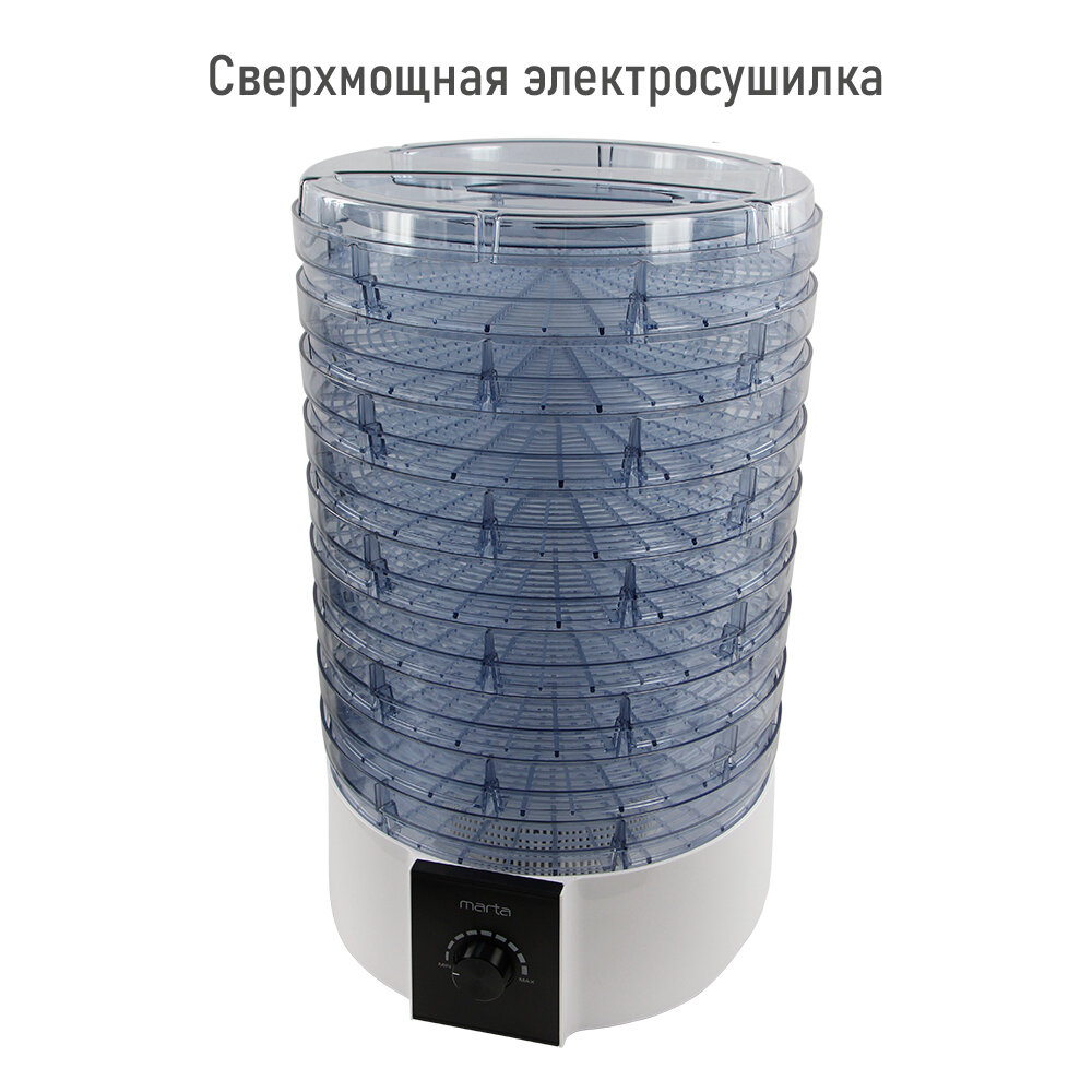 Электросушилка MARTA MT-FD1889F 11 поддонов (9+1 для пастилы+1 для ягод) белый жемчуг интересное: