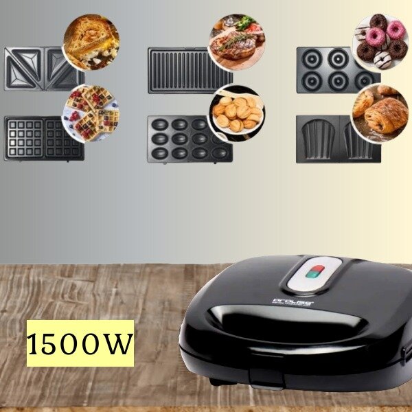 Kelli Мультипекарь, мультипекарь вафельница, мультипекарь гриль, 1800Вт, антипригарное покрытие, сменные панели, черный