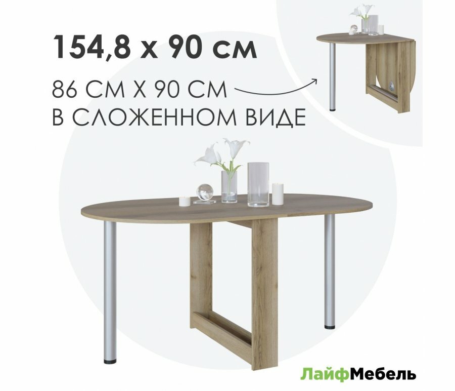СохранитьСтол раскладной ССП-12, цвет дуб делано, ШхГхВ 155х90х74 см., 86х90х74 см. сложенный, одна откидная столешница интересное: