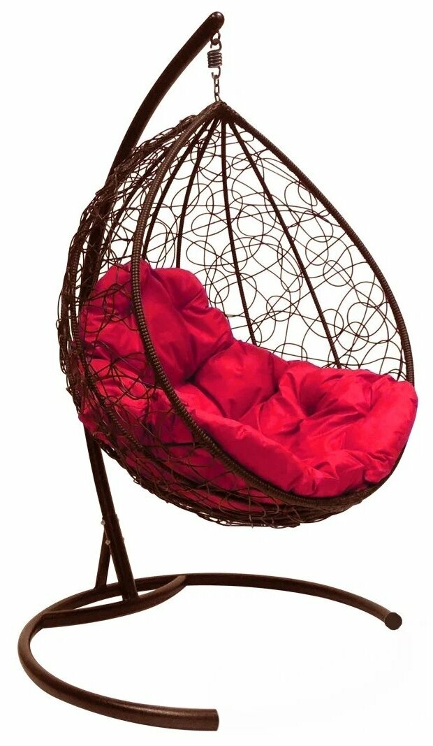 Подвесное кресло M-group капля с ротангом коричневое красная подушка