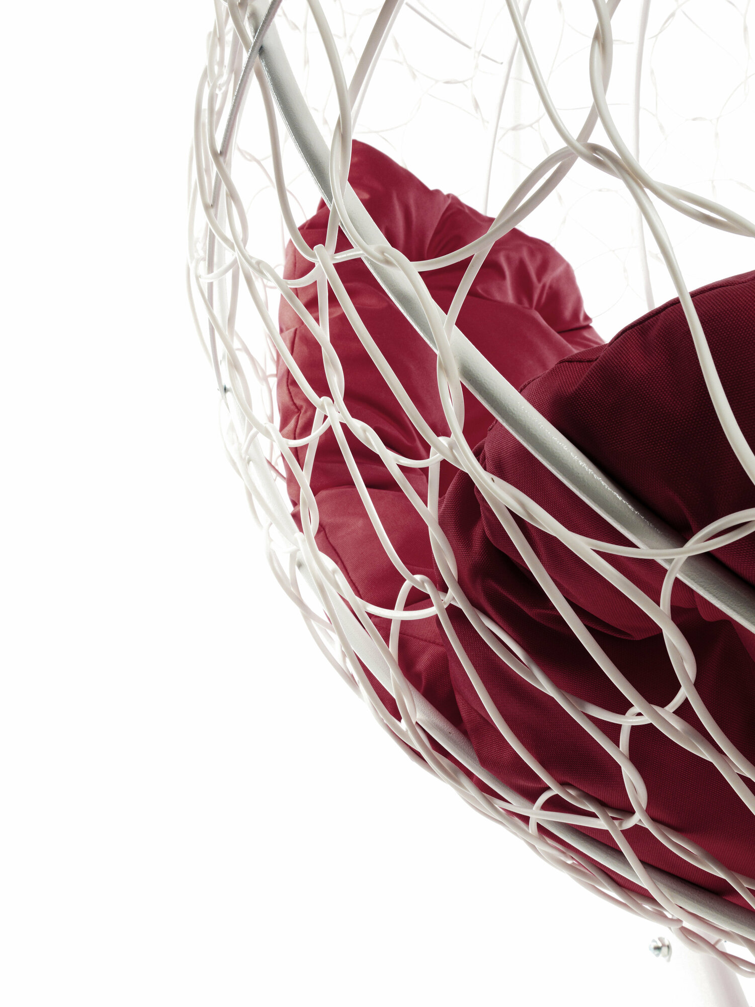 Подвесное кресло капля ротанг белое (без стойки), бордовая подушка