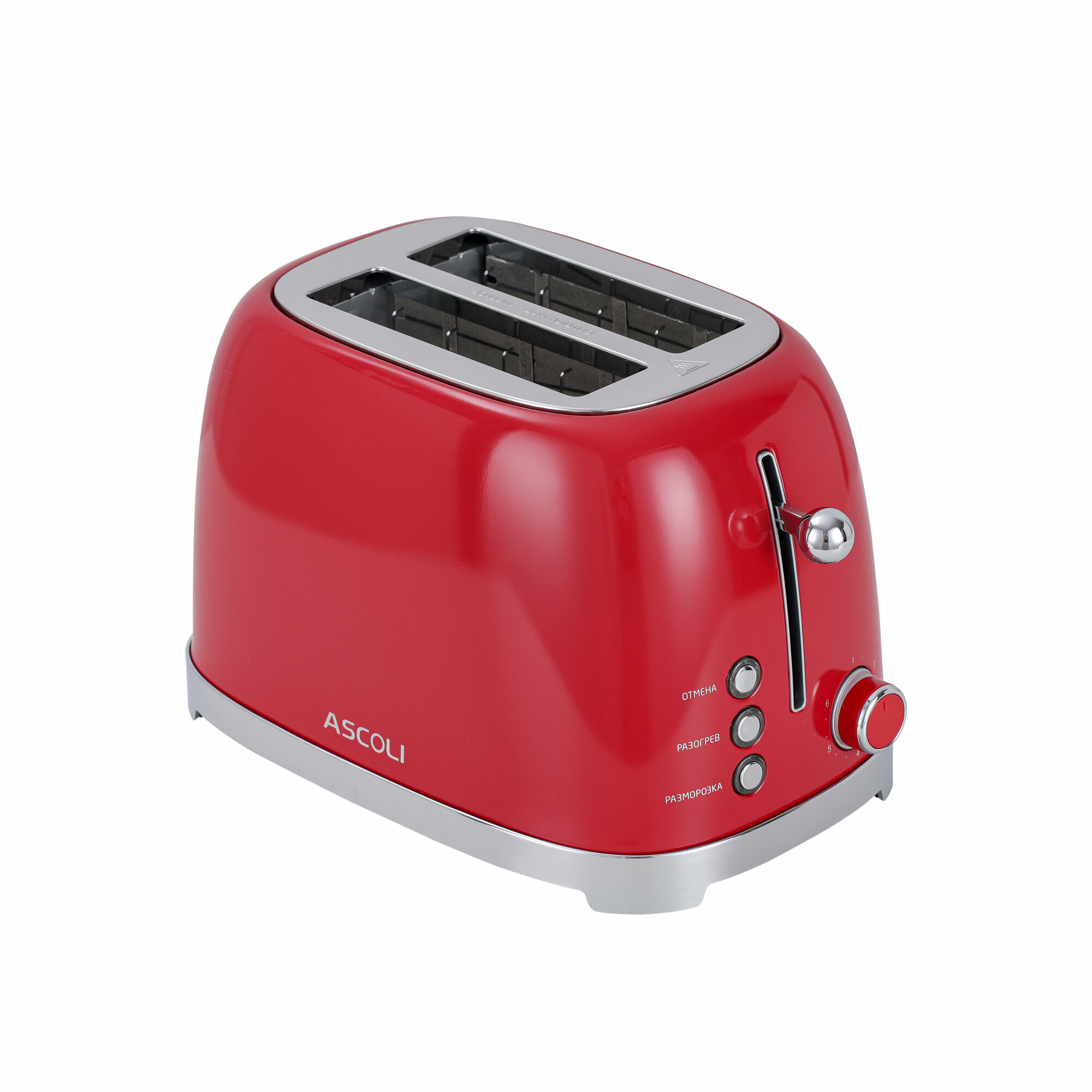 Тостер Ascoli "AT-330CR", 815Вт, металлический корпус, 2 отделения для тостов, цвет красный