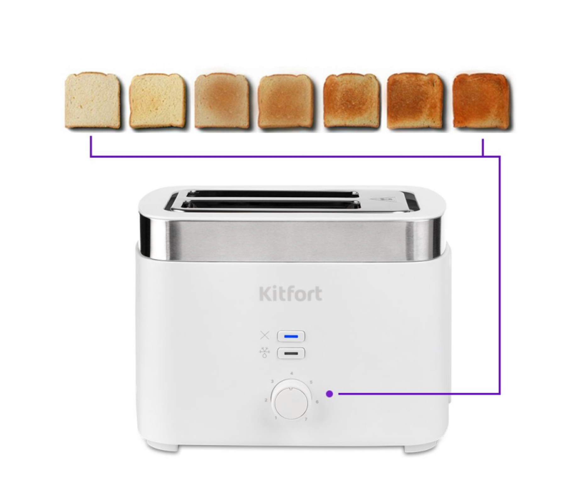 Купить Тостер Kitfort, 2 отделения, автоматическое центрирование тостов, кнопка отмены, регулировка степени обжаривания