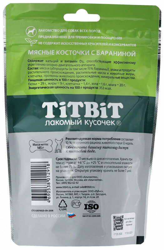 TiTBiT Лакомство из баранины Titbit "Косточки мясные" для собак, 145 г