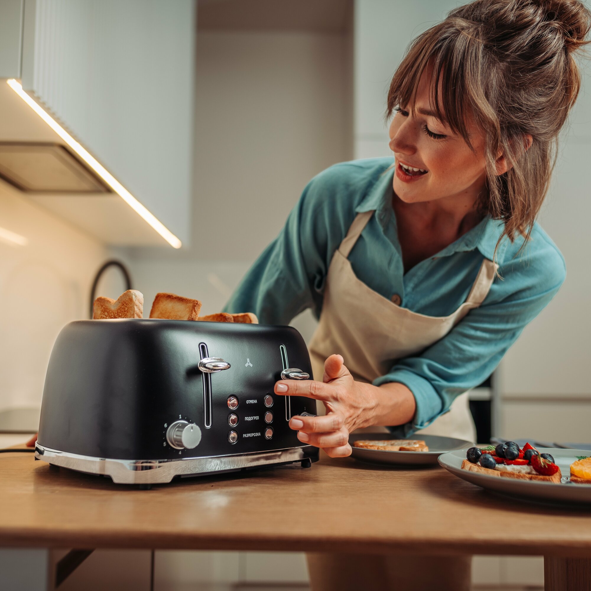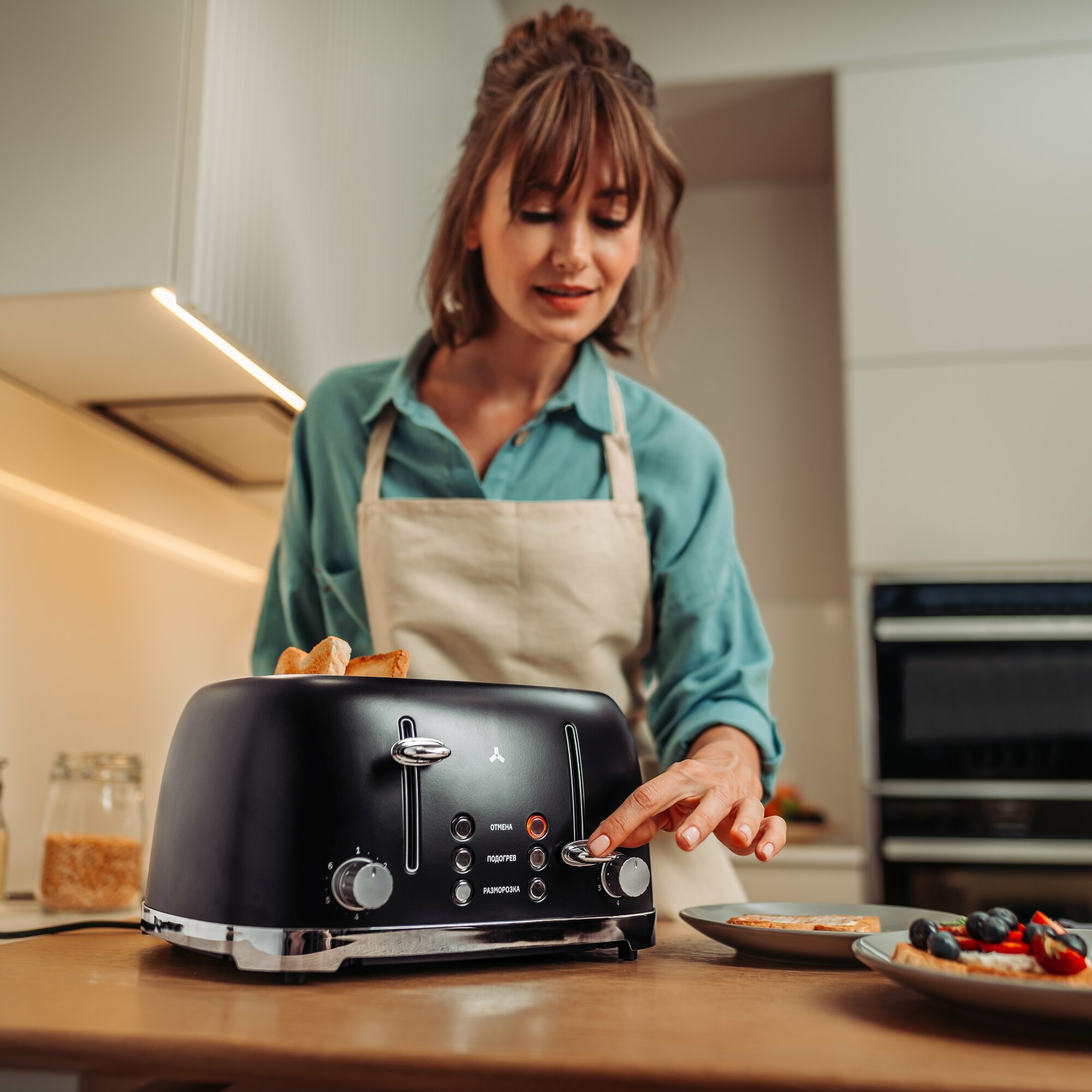 | Дополнительные функции | автоматическое центрирование тостов, кнопка отмены, регулировка степени обжаривания |