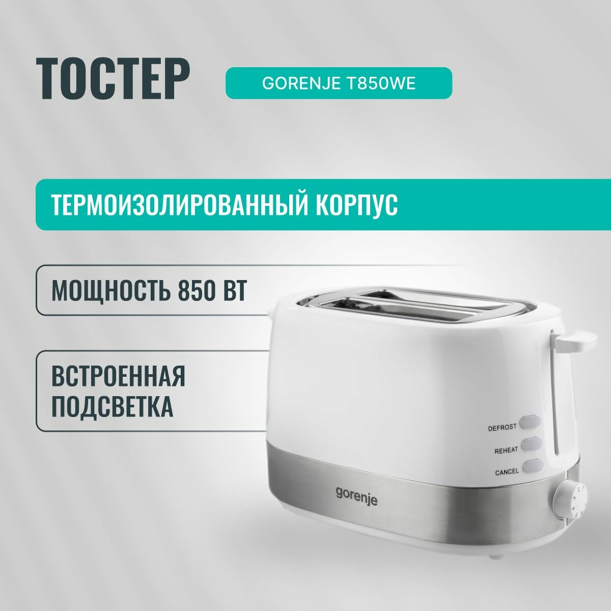 Тостер Gorenje T850WE 720Вт белый интересное: