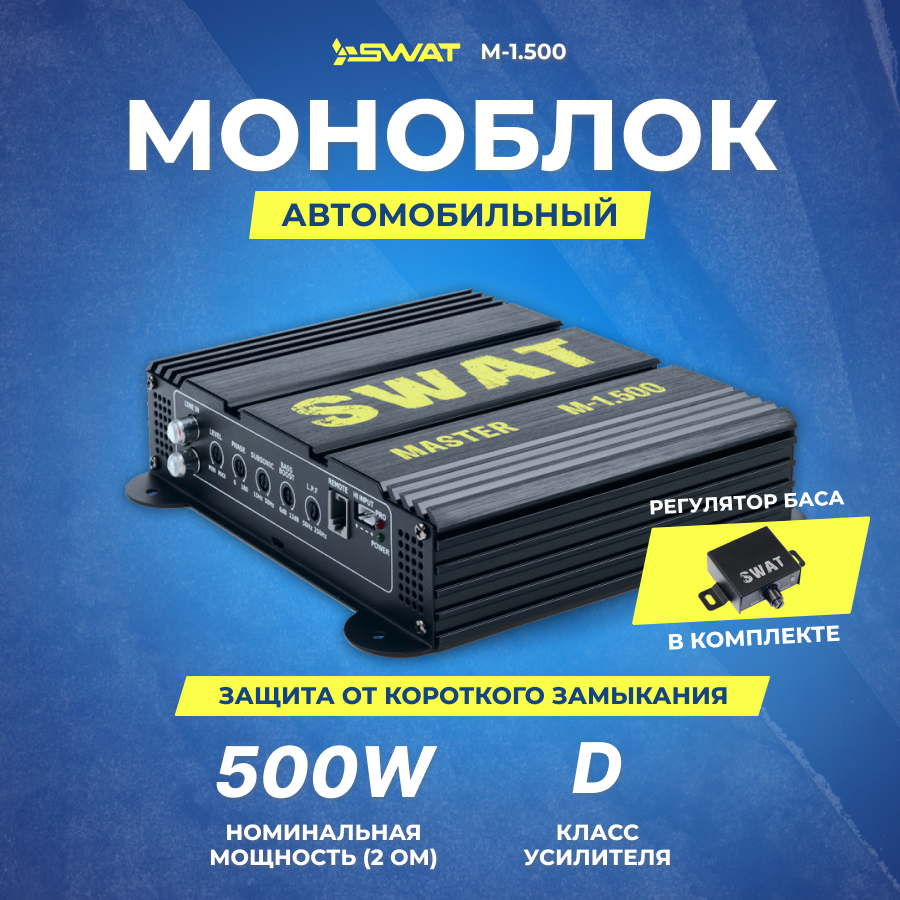 Усилитель автомобильный Swat M-1.500 одноканальный