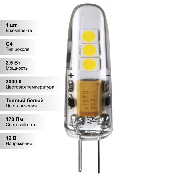 СохранитьЛампа светодиодная Navigator G4 2,5 Вт 3000К теплый свет 12 В капсула (712658/71265) интересное: