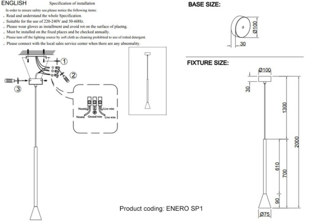Светильник подвесной Crystal Lux ENERO, ENERO SP1 BRASS, 40W, GU10