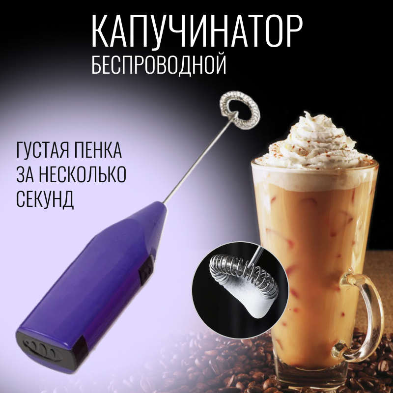 Капучинатор электрический фиолетовый, взбиватель сливок для кофе/ мини-миксер / венчик для взбивания / вспениватель молока интересное: