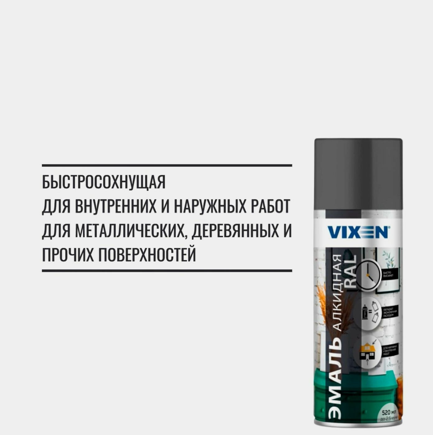 VIXEN Эмаль универсальная RAL, тёмно-серый (RAL 7046), аэрозоль