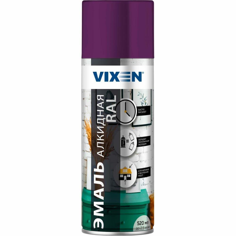 Vixen Эмаль алкидная RAL, фиолетовый (RAL 4008), аэрозоль 520 мл , VX14008