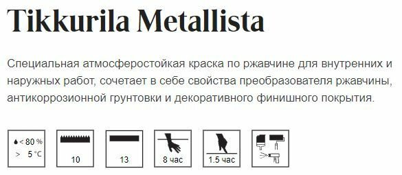 краска по ржавчине Tikkurila Metallista (Тиккурила Металлиста) , вес:0.9 л , цвет:черный Tikkurila TikkurilaMetallista