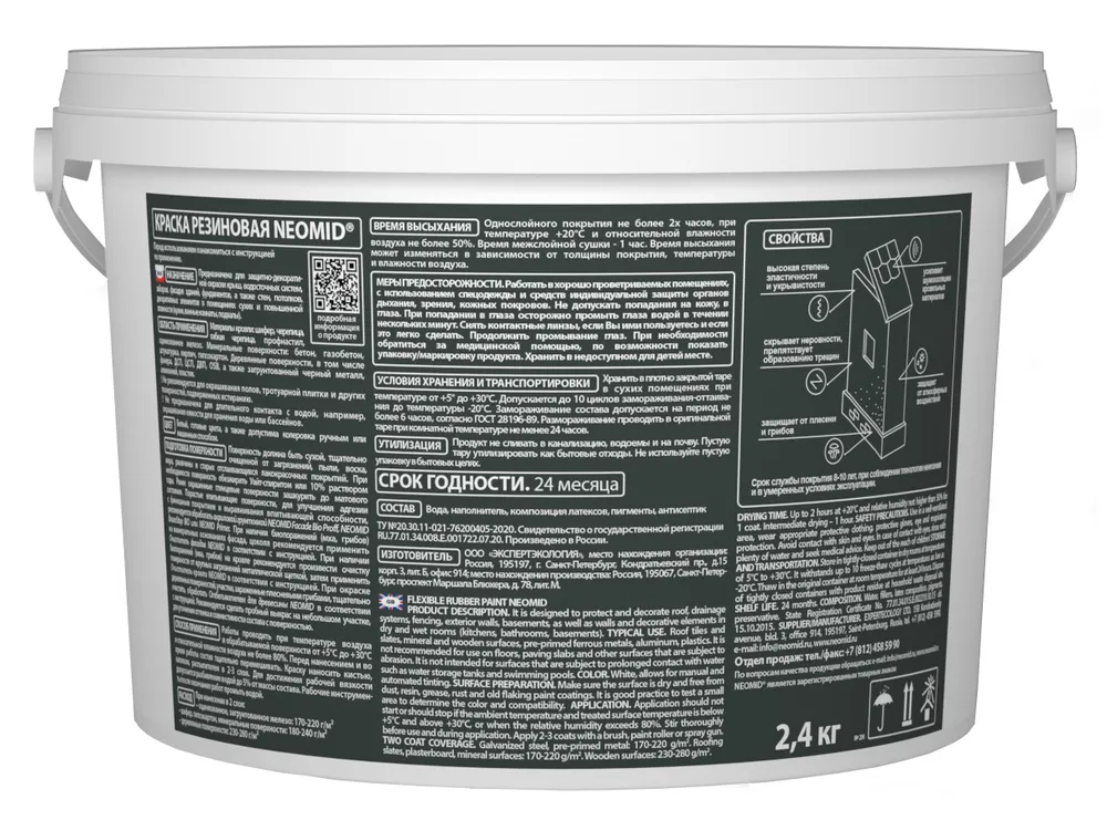 Резиновая краска NEOMID Белый RAL 9003 (2,4 кг) / Для фасадов, для стен и потолков в помещениях повышенной влажности