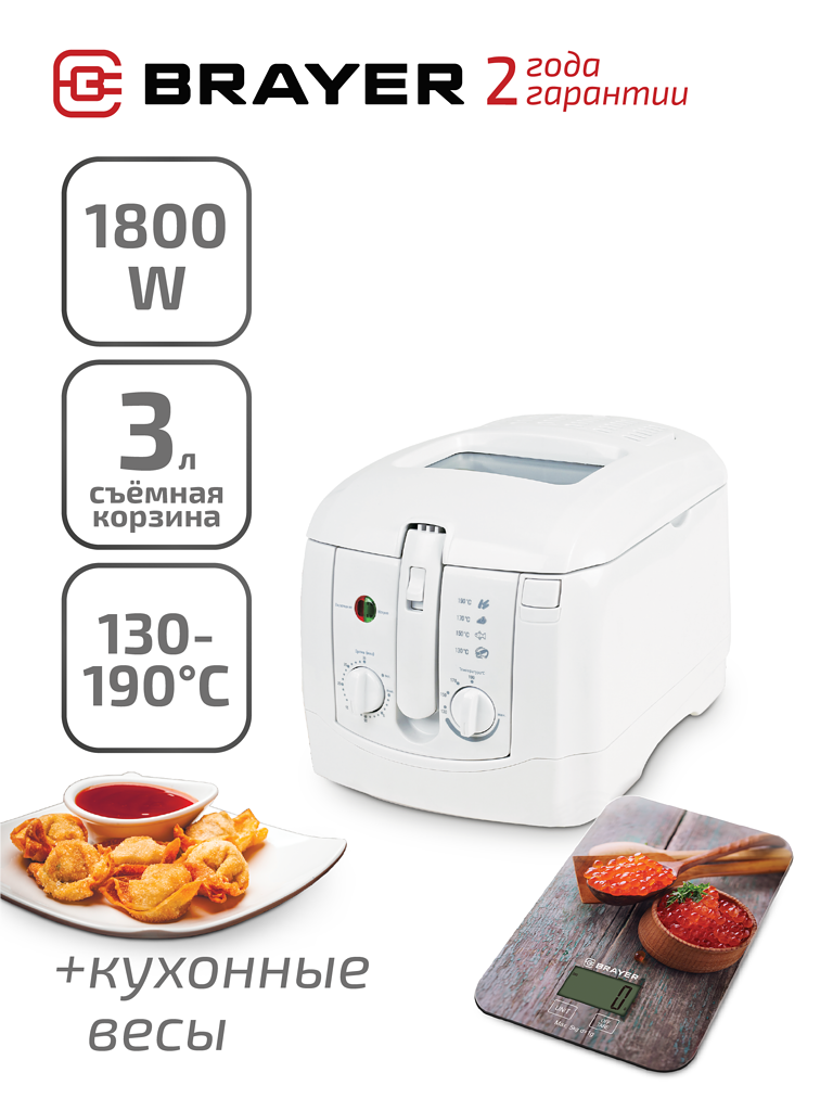 Купить Фритюрница BRAYER BR2830, 1800 вт + кухонные электронные весы в подарок