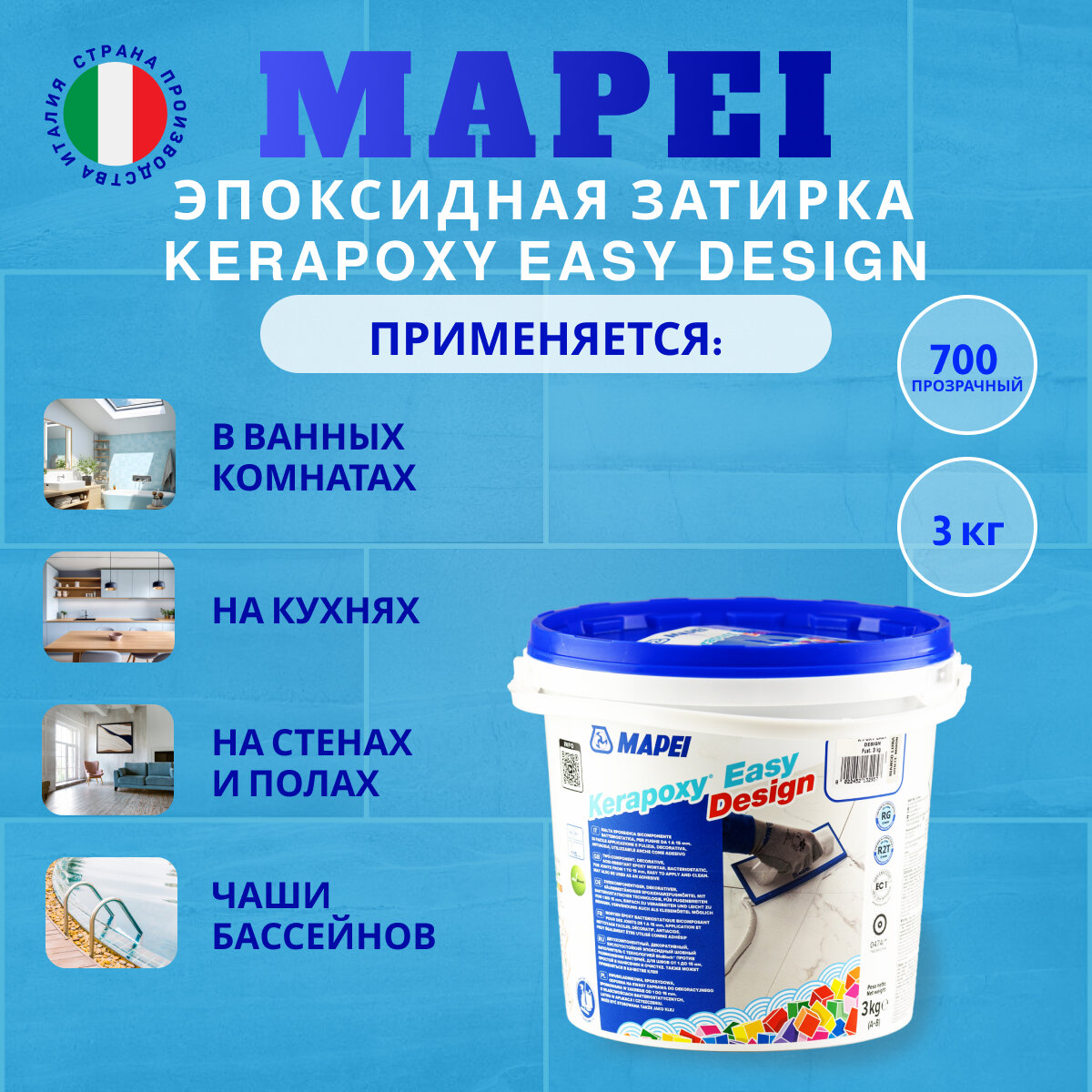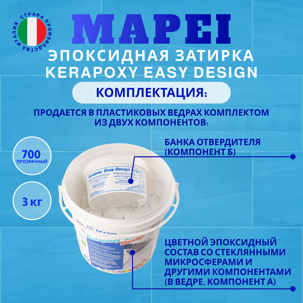 Эпоксидная затирка Kerapoxy EASY Design MAPEI № 700 Прозрачный, 3 кг