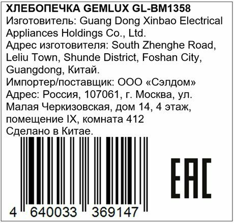 Хлебопечка Gemlux GL-BM1358 интересное: