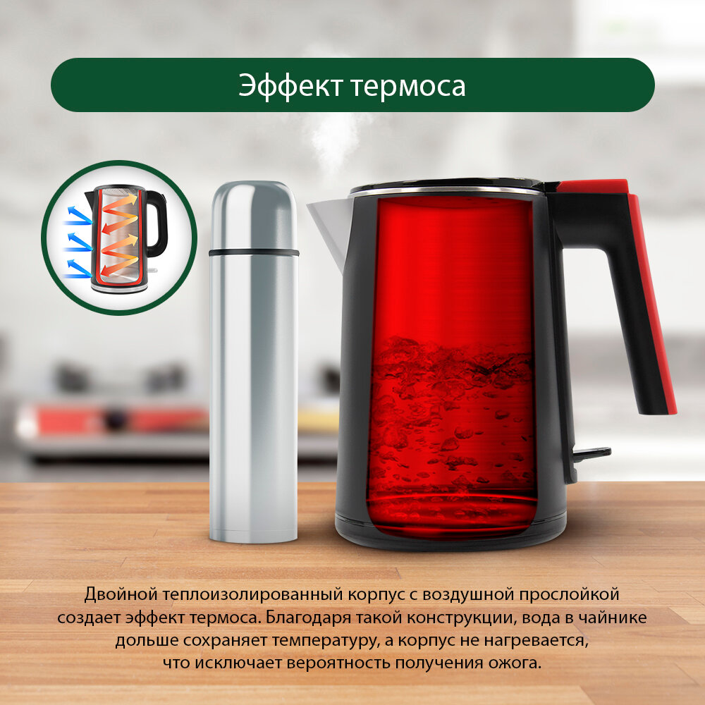 | Отзыв: | Чайник вместительный, вода в нем быстро закипает. При этом за ним легко ухаживать, т.к. структура корпуса особо не загрязняется даже от жесткой воды. Для современного интерьера кухни - хороший вариант. |
