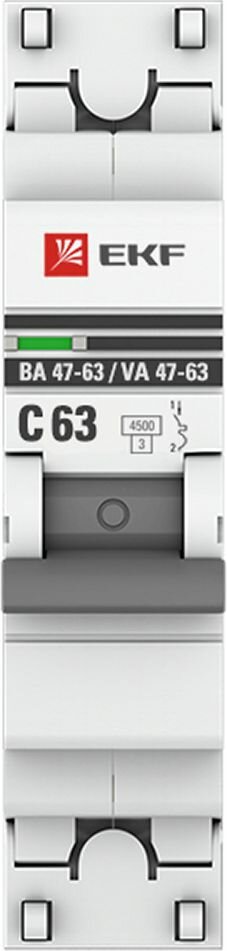 Модульный автоматический выключатель ВА 47-63 PROxima 1 полюс, 63А, х-ка C mcb4763-1-63C-pro EKF