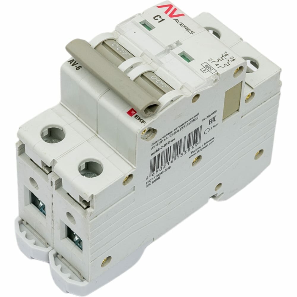 Выключатель автоматический модульный 2п C 1А 6кА AV-6 Averes EKF mcb6-2-01C-av mcb6-2-01C-av .