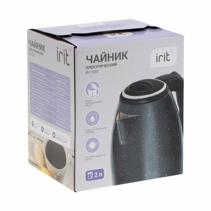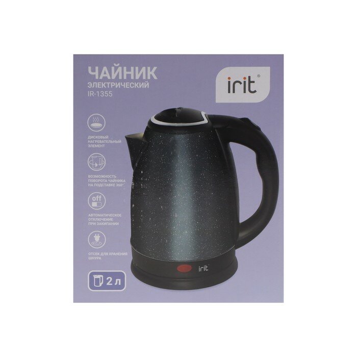Купить Чайник электрический Irit IR-1355, металл, 2 л, 1500 Вт, чёрный