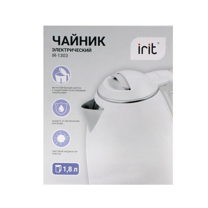 Купить Чайник электрический Irit IR-1303, металл, 1.8 л, 1500 Вт, белый