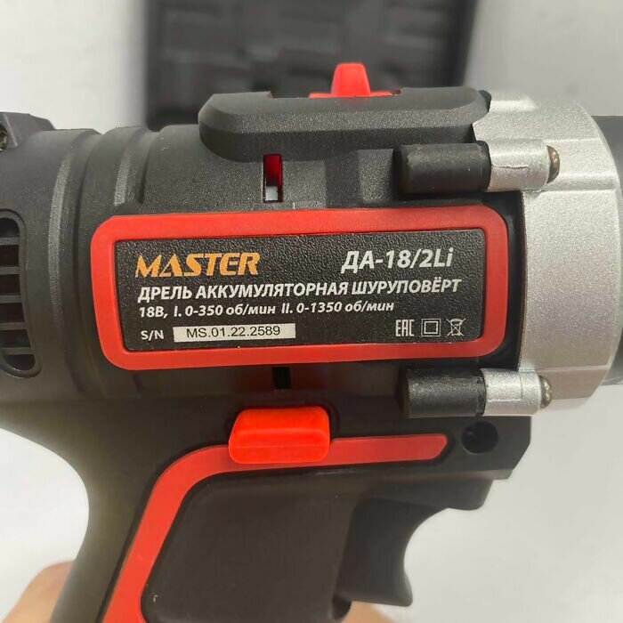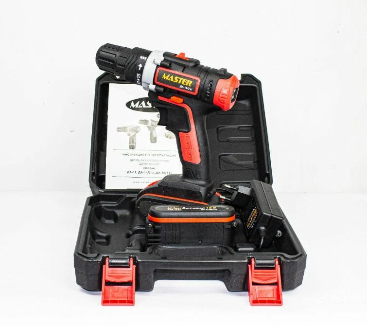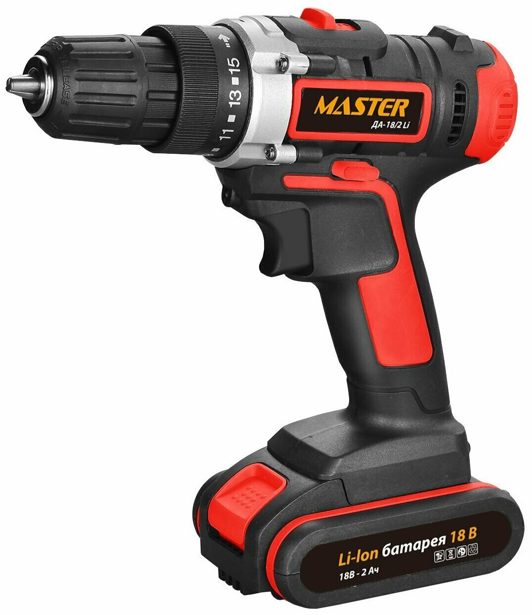 Дрель шуруповёрт аккумуляторная MASTER ДА-18/2 Li (18В, 2акк*2.0Ач, БЗП-10мм, 0-400 0-1400об м, кейс)