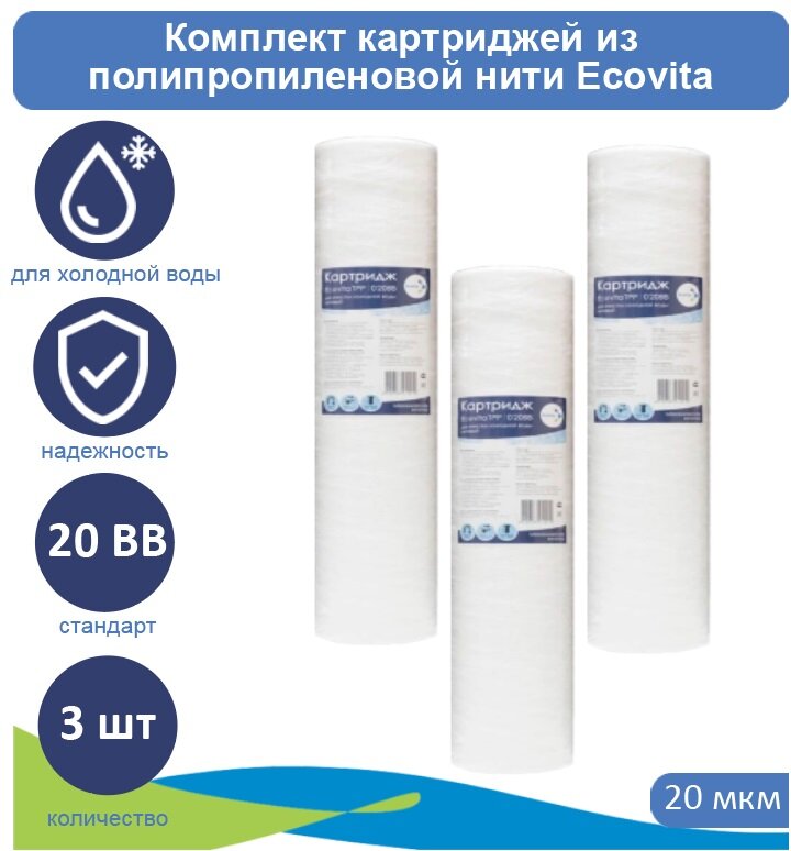 Купить Картридж полипропиленовый Ecovita TPP 20 20BB, 3 шт.