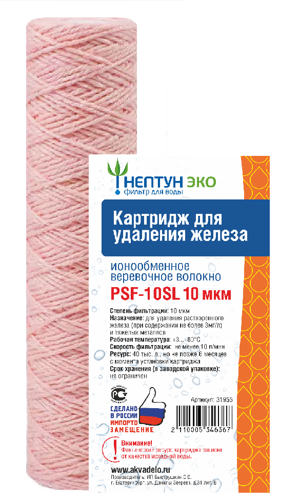 Картридж сменный "Нептун" ЭКО PSF-10SL, обезжелезивающая нить, 10 мкм Нептун 4863248 . интересное: