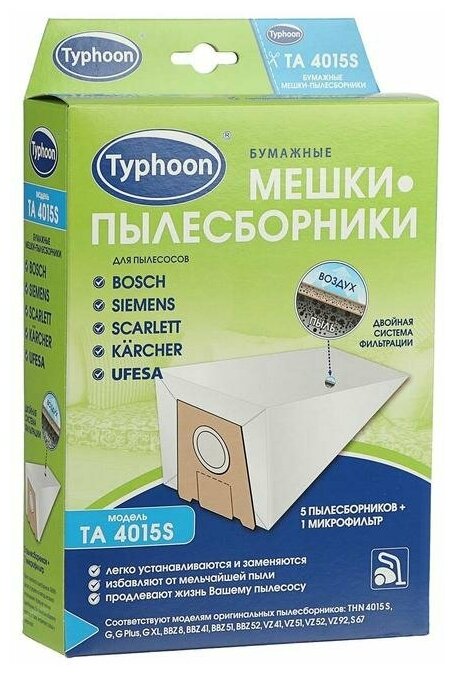 Тайфун TA 4015S Бумажные мешки-пылесборники для пылесосов, 5 шт. + 1 микрофильтр интересное: