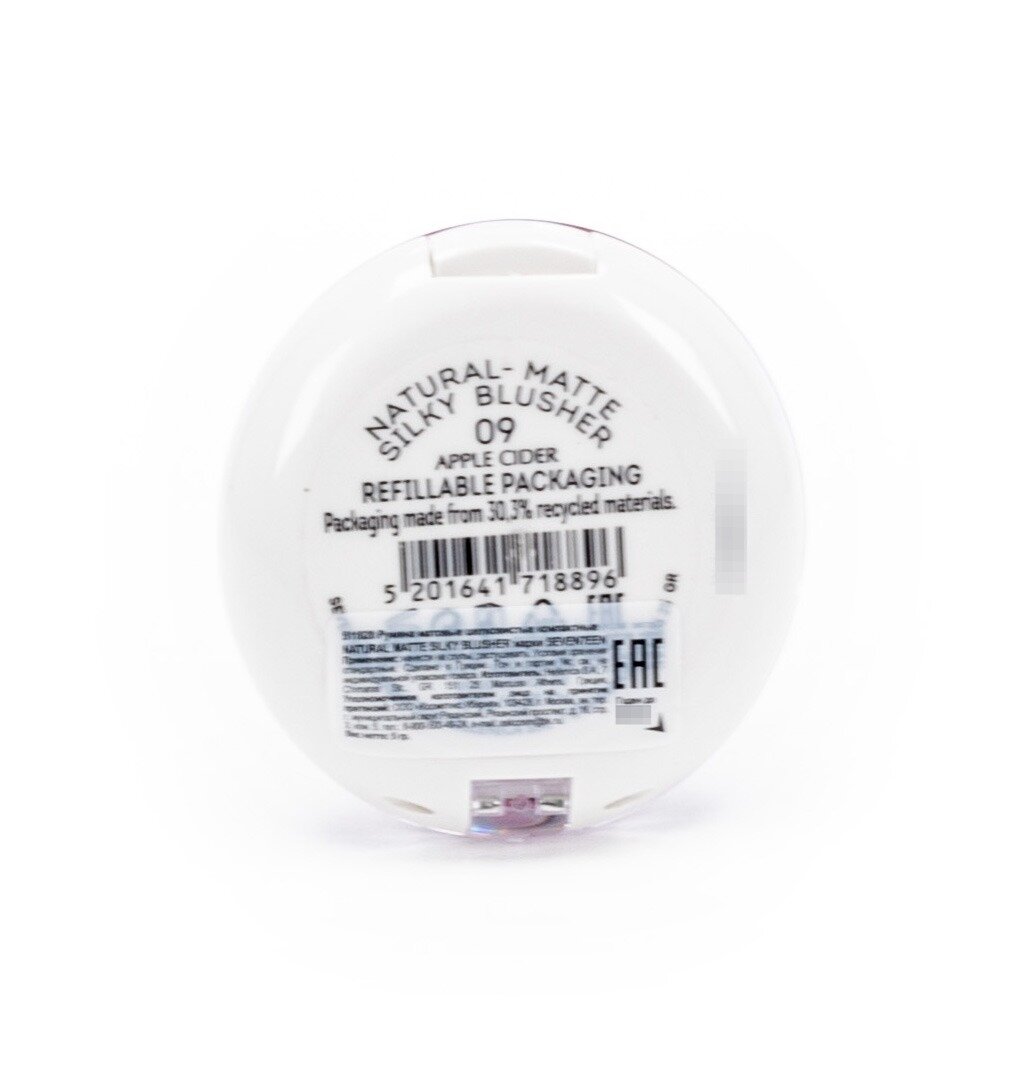 Seventeen / Севентин Румяна для лица сухие Natural Matte Silky Blusher для любого типа кожи 09 Apple cider в футляре 5г / декоративная косметика