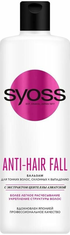 Бальзам SYOSS 450 мл ANTI-HAIR FALL для тонких волос, склонных к выпадению /12