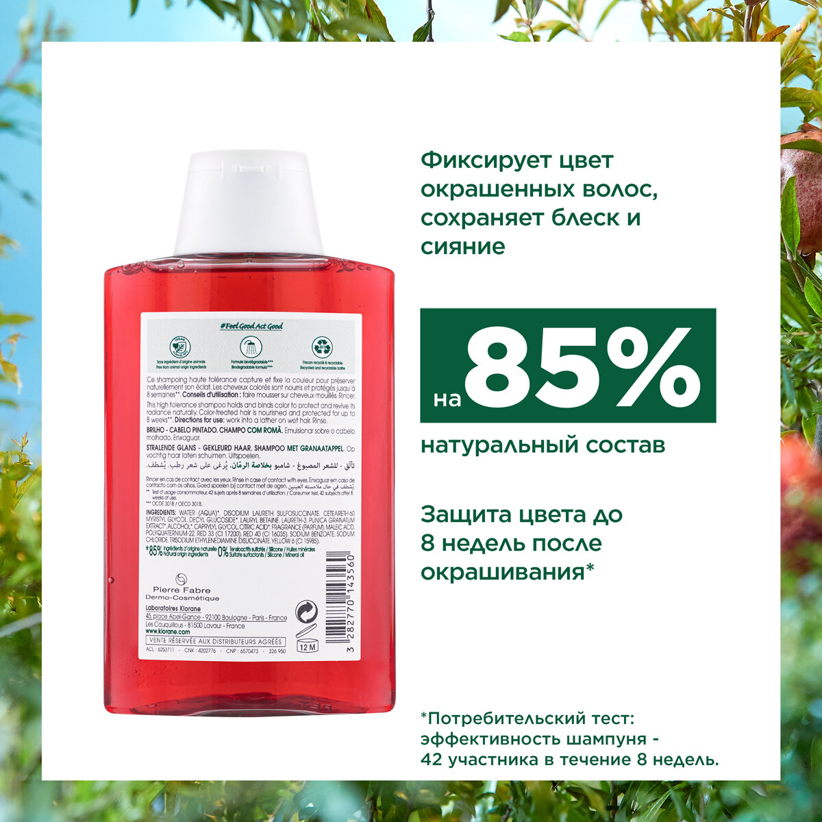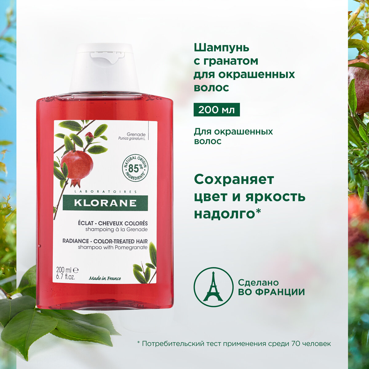 Шампунь KLORANE с Гранатом для окрашенных волос, 200 мл