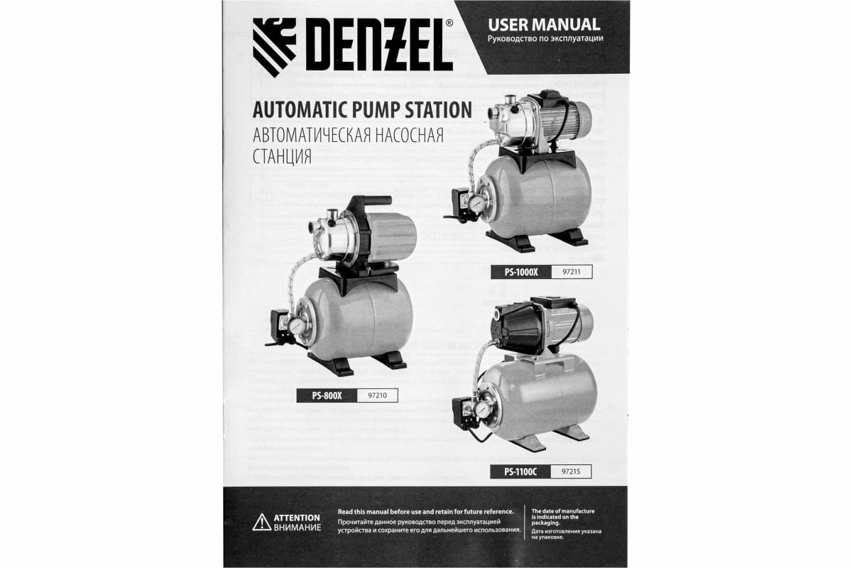 Насосная станция Denzel PS800X 800 Вт, 3200 л/ч, ресивер 24 л, подъем 38 м, нержавейка (арт. 97210)