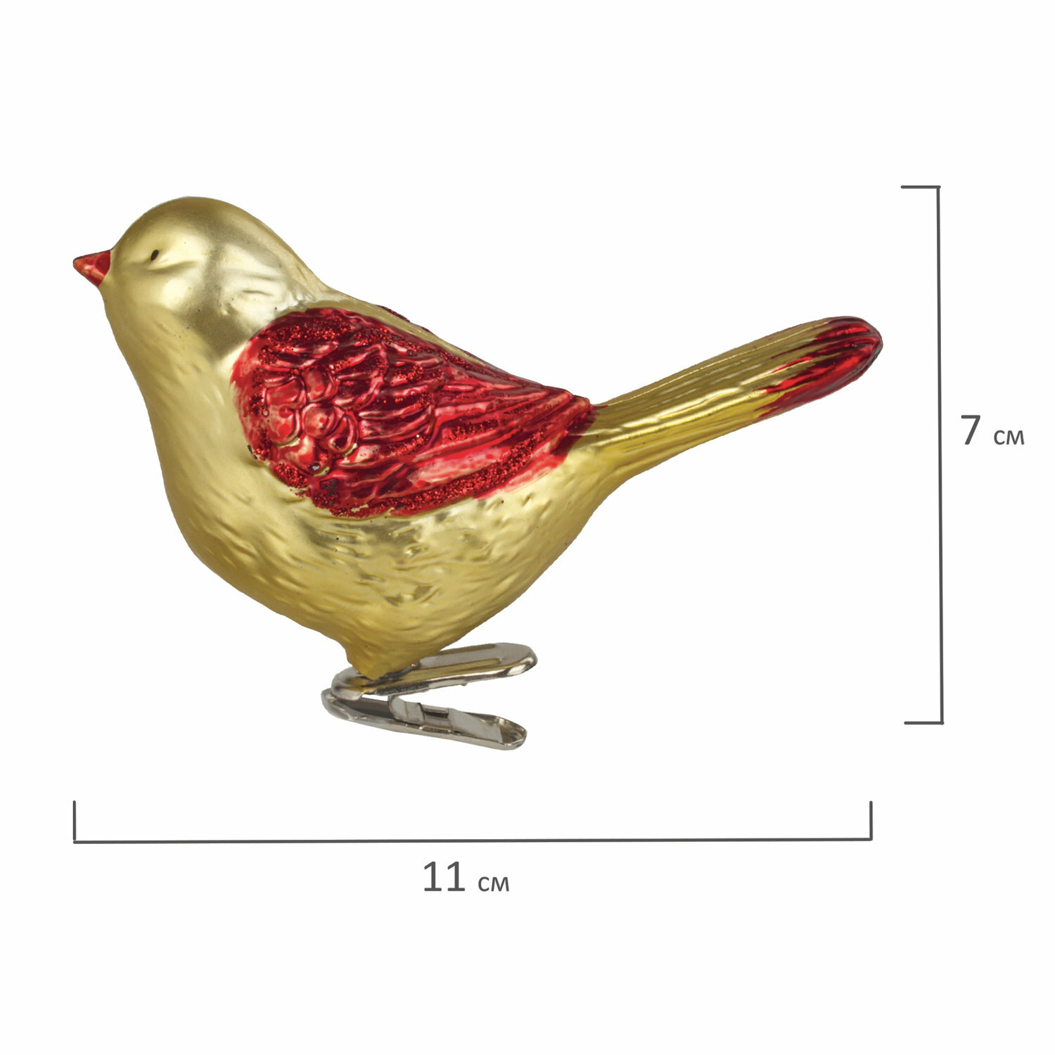 Украшения елочные золотая сказка Птичка, набор 2 шт., пластик, 11 см, цвет красный с золотыми крыльями, 590893 1 шт.