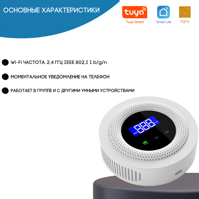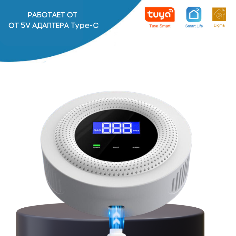 Умный WI-FI датчик утечки газа с дистанционным управлением от Tuya Smart Life Digma интересное: