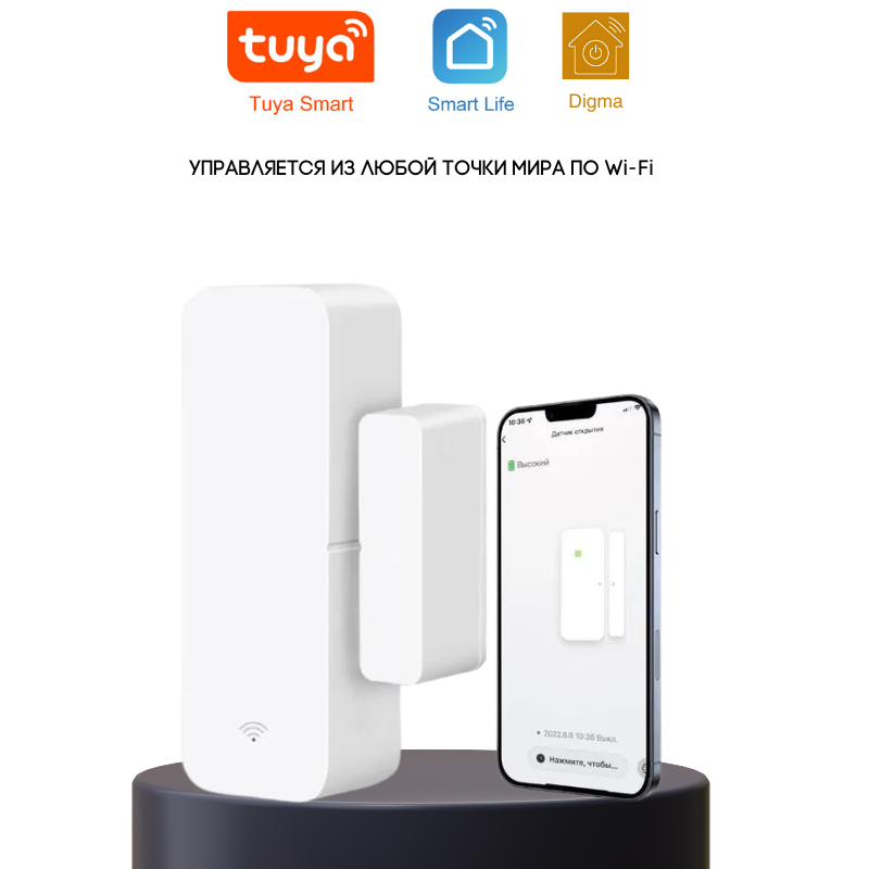 Умный беспроводной WI-FI датчик открытия дверей и окон с дистанционным управлением от Tuya Smart Life Digma интересное: