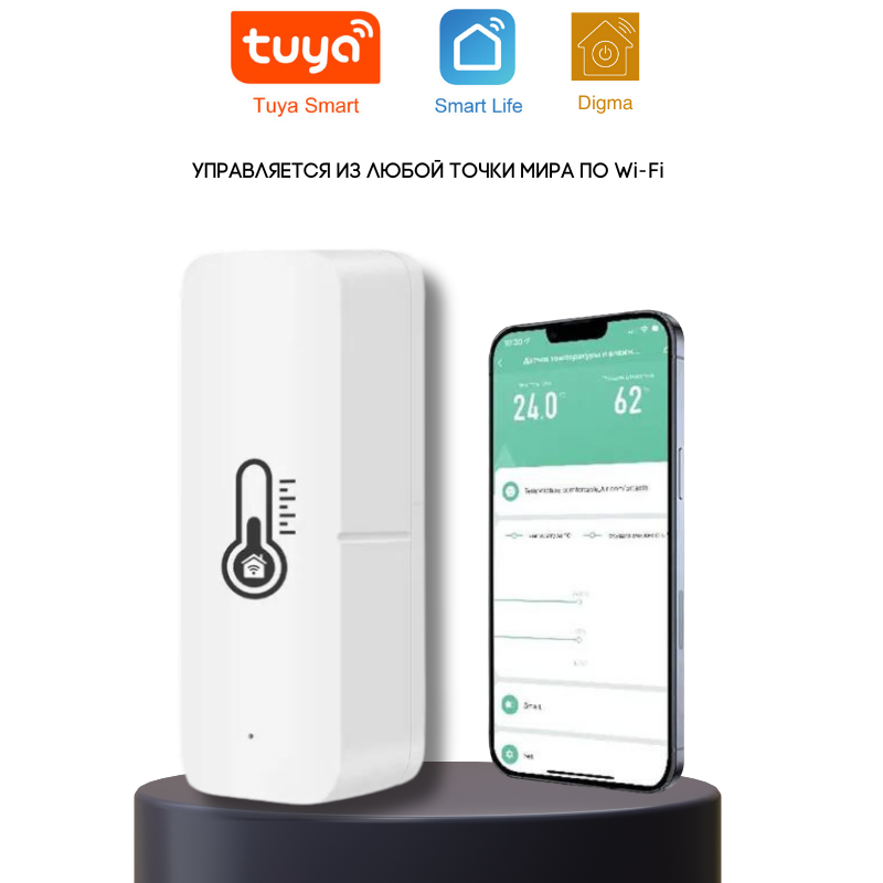 Умный беспроводной Wi-Fi датчик температуры и влажности с дистанционным управлением от Tuya / Smart Life / Digma интересное: