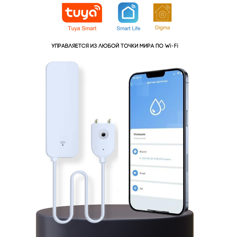 Умный датчик протечки воды Wi-Fi Tuya для умного дома с дистанционным управлением интересное: