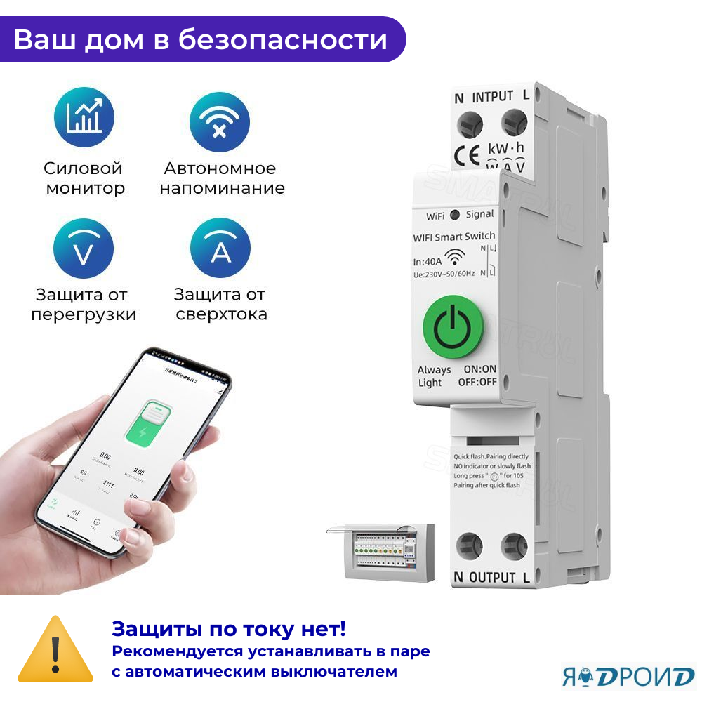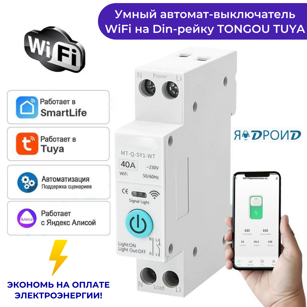 Умный автомат-выключатель Wi-Fi на Din-рейку TONGOU TUYA с ваттметром 40A. Работает в Smart Life и голосовым помощником Яндекс Алиса интересное: