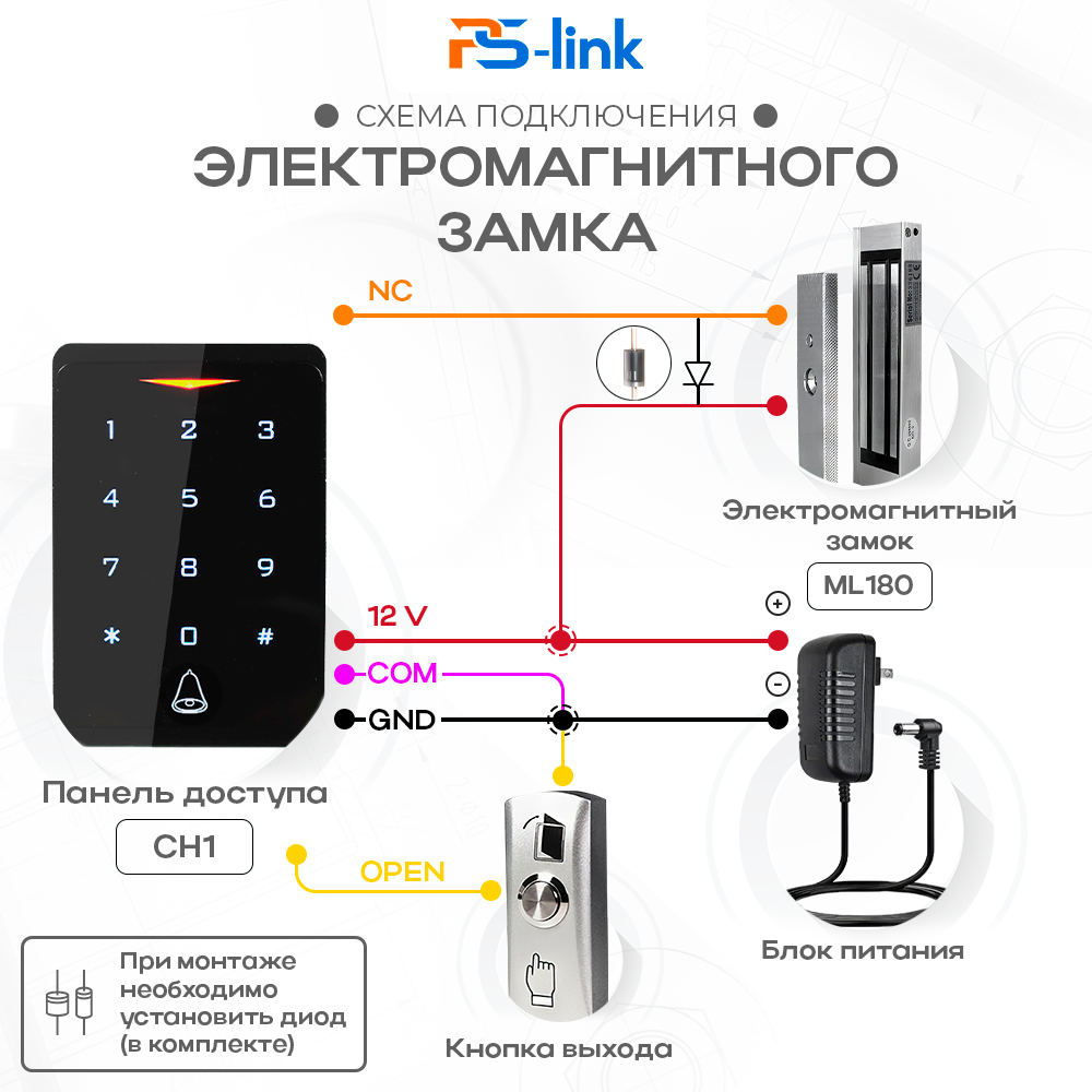 Ниже Вы можете прочитать отзывы на Комплект СКУД на одну дверь PS-link CH1-180 WIFI с усилием отрыва замка 180кг, ознакомится с подробными характеристиками, посмотреть интересные обзоры и фотографии на Комплект СКУД на одну дверь PS-link CH1-180 WIFI с усилием отрыва замка 180кг.