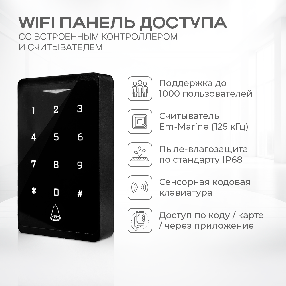 | Дополнительная информация | Дистанционное управление. С помощью удобного приложения на вашем смартфоне вы можете управлять доступом в помещение из любой точки мира, где бы вы ни находились. Просто подключите панель к смартфону и интернету, и вы сможете контролировать, кто и когда может войти внутрь. Будьте уверены в безопасности своего помещения в любое время с помощью этой инновационной системы дистанционного управления доступом. |