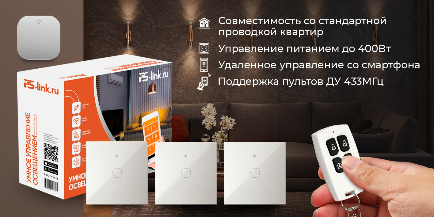 Комплект умного освещения PS-link PS-2416 / 3 выключателя / WiFi / Белый интересное: