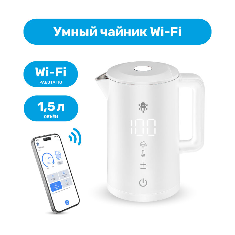 Комплект Умный чайник SLS KET-06 WI-FI (белый) c поддержкой голосовых ассистентов Алиса, Маруся и Салют + Умная колонка SberBoom Mini интересное: